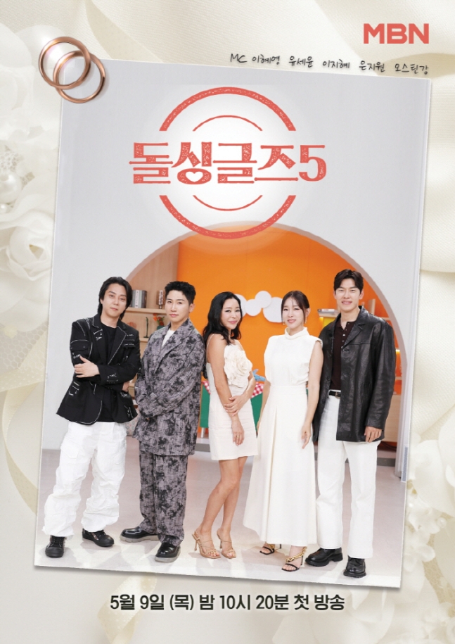 MBN '돌싱글즈5'가 5MC 이혜영-유세윤-이지혜-은지원-오스틴 강의 더욱 세진 '매운맛 입담'을 예고하며, 이들의 '공식 포스터'를 전격 공개했다." data-ke-type="html">HTML 삽입미리보기할 수 없는 소스5월 9일 밤 10시 20분 첫 회를 방송하는 '돌싱글즈5'는 "사랑에 빠지세요"라는 유일무이한 룰 아래, 제주도로 한데 모인 90년대생 돌싱남녀들의 거침없는 로맨스를 담아낸다. 특히 이번 시즌은 기존 출연진보다 연령대가 확 낮아진 'MZ 돌싱'들이 본격 등장해, 역대급 비주얼과 독특한 캐릭터로 무장해 시청자들의 도파민을 최대치로 끌어올릴 예정이다." data-ke-type="html">HTML 삽입미리보기할 수 없는 소스이와 관련 '돌싱글즈5'가 시즌4에 이어 돌싱들의 연애사를 생..